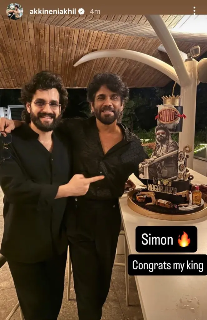 In a situation like this, Akhil Akkineni took the fans by surprise as he posted a photo with Nagarjuna on Instagram, saying, “Congratulations to King for ‘Coolie.'”