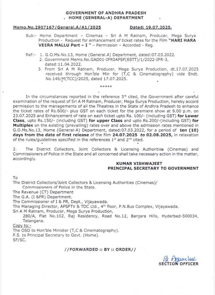 Hari Hara Veera Mallu Andhra Pradesh Ticket Hike G.O. is out