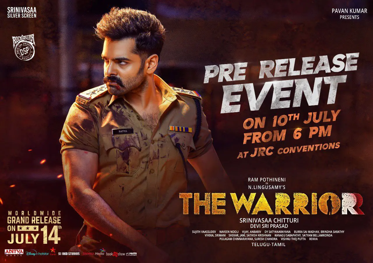 ది వారియర్ చిత్రం జులై 14న రిలీజ్ కానుంది. ఈ చిత్రంలో ఎనర్జిటిక్ స్టార్ రామ్,కృతిశెట్టి జంటగా నటించనున్నారు. తమిళ స్టార్ డైరెక్టర్ లింగుస్వామి దర్శకత్వం వహిస్తున్నారు. ది వారియర్ తమిళ వెర్షన్ ప్రీ రిలీజ్ ఈవెంట్ చెన్నైలో ఇటీవలే ఐకానిక్ సత్యం సినిమాస్ లో ప్లాన్ చేశారు.