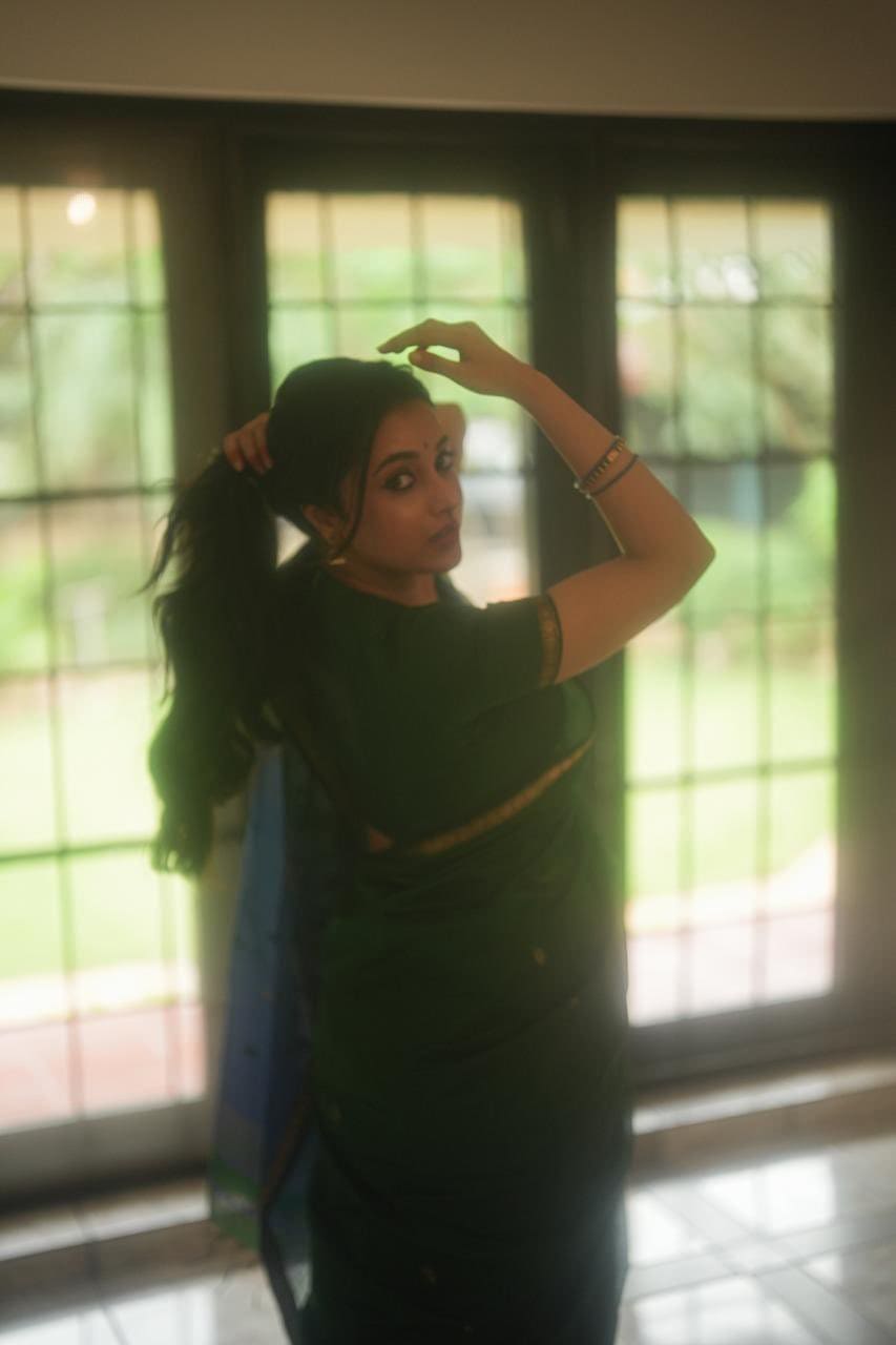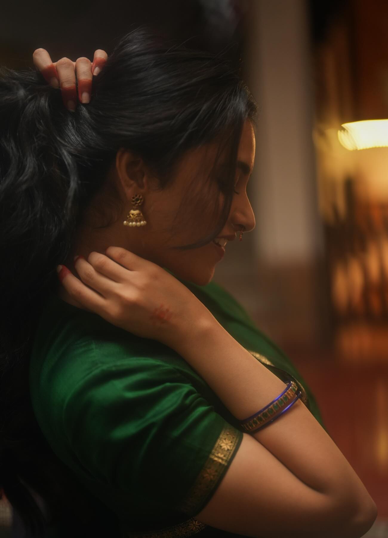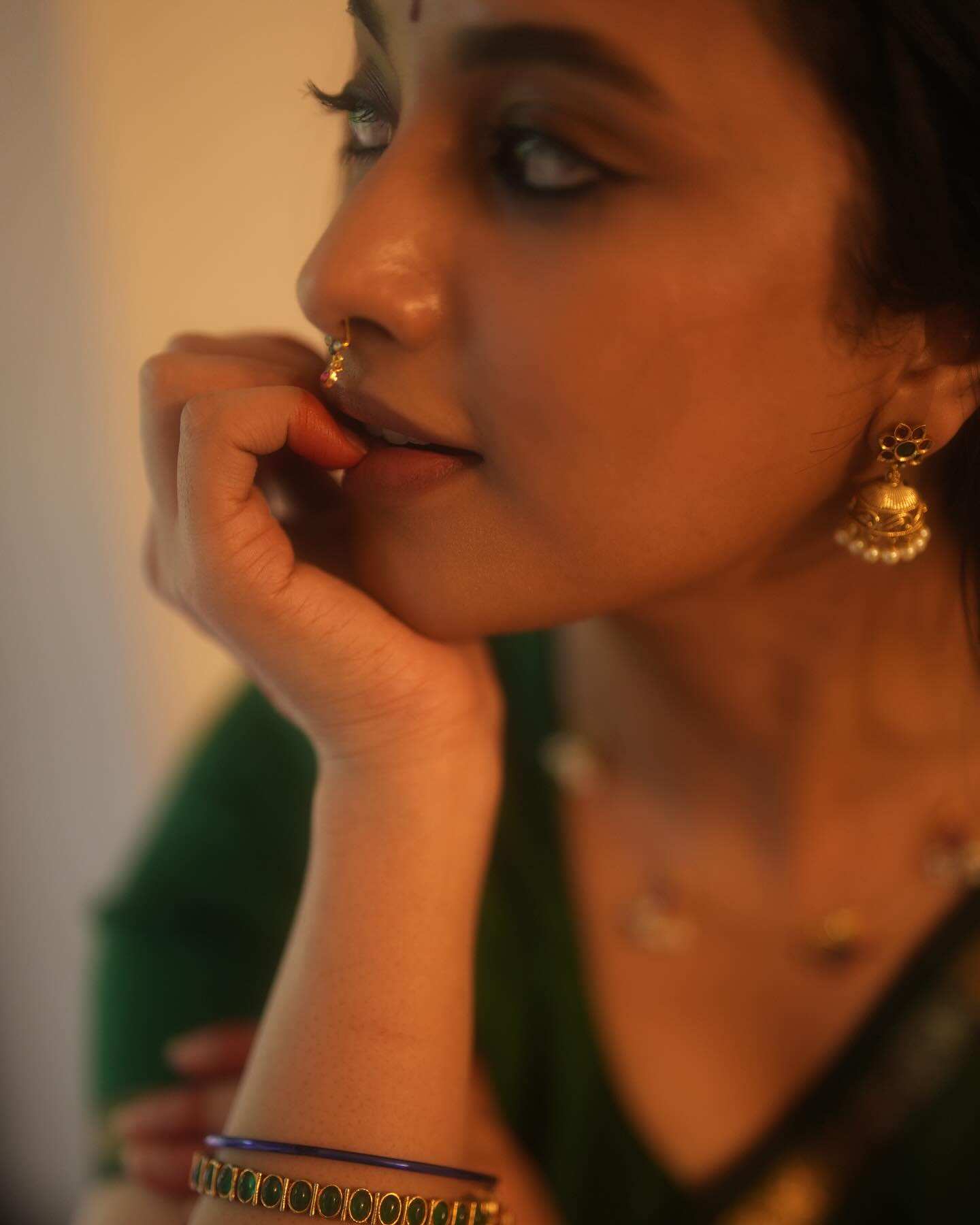 Priyanka Mohan radiates elegance in this stunning green saree. The actress looks absolutely beautiful in this traditional attire.
