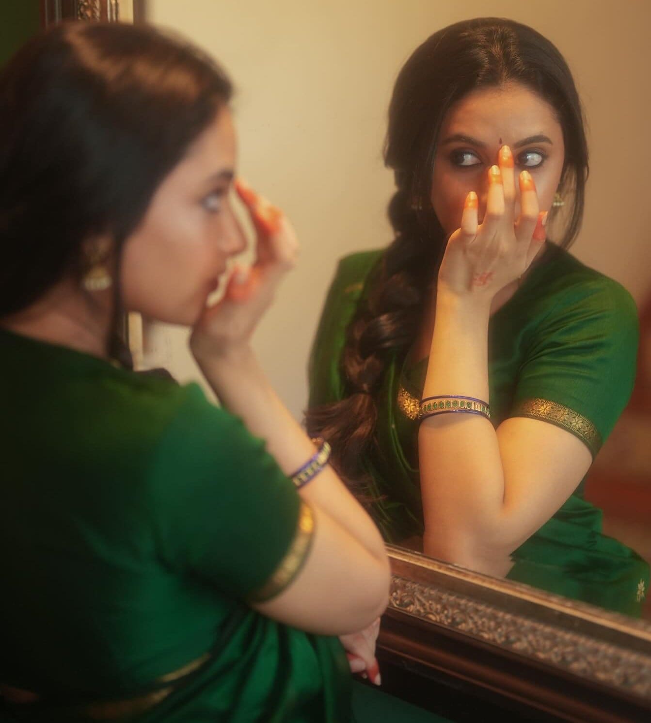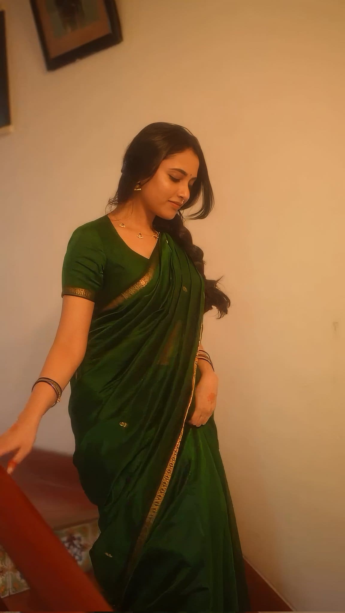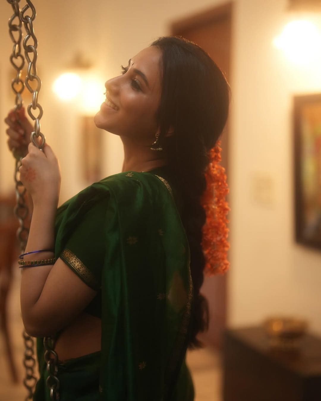 Priyanka Mohan radiates elegance in this stunning green saree. The actress looks absolutely beautiful in this traditional attire.