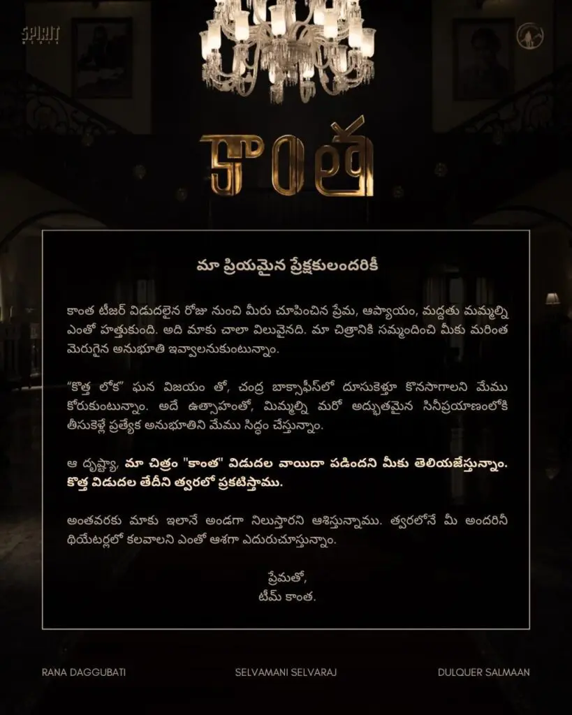 Since Lokah is produced by Dulquer himself, he didn’t want to affect its successful run. A new release date for Kaantha hasn’t been announced yet, but there’s talk that it might aim for a Diwali release.