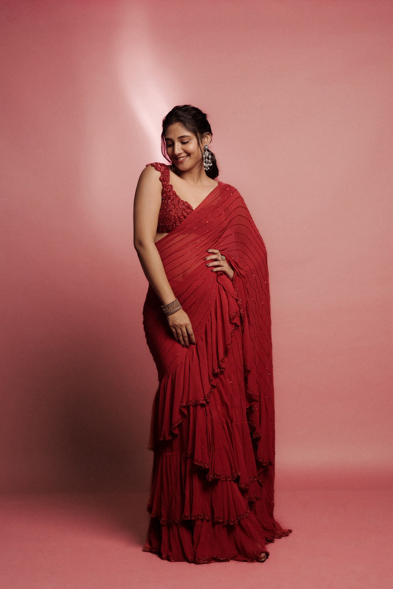 Ritika Nayak turned heads at the Mirai success meet as she graced the event in a stunning red saree, radiating elegance and charm. The actress shared glimpses of her look on social media, much to the delight of her fans who are celebrating the film’s massive success with her. Riding high on the love for Mirai, Ritika is also busy with her upcoming projects, including Duet alongside Anand Devarakonda and Varun Tej 15, making her one of the most promising talents to watch out for.