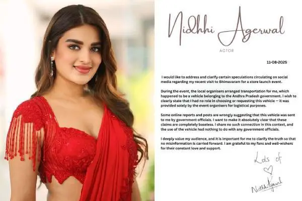 Taking to her X account, Nidhhi shared an official statement: “I would like to address and clarify certain speculations circulating on social media regarding my recent visit to Bhimavaram for a store launch event.”