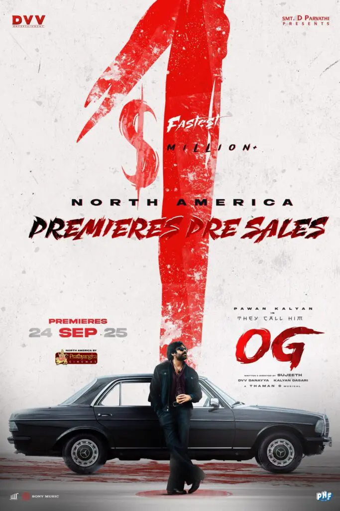 With three weeks left until its theatrical release, Pawan Kalyan’s OG creates history in America by becoming the fastest million-dollar pre-sales film for premieres.