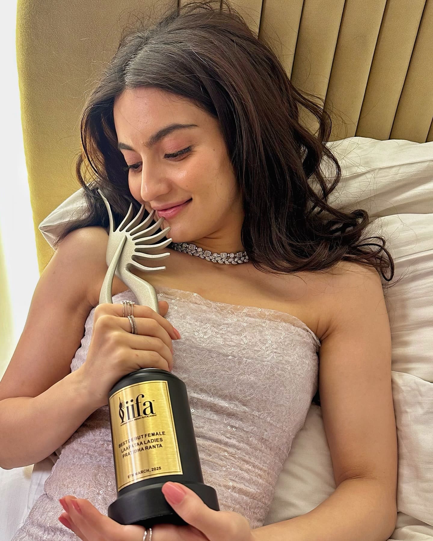 Pratibha Ranta graced the IIFA Awards 2025 in an ethereal light pink outfit, her simple necklace accentuating her natural beauty. The actress, who won Best Debut Female for her compelling performance in “Laapata Ladies,” shone brightly, proving that understated elegance can be just as impactful as extravagant glamour.