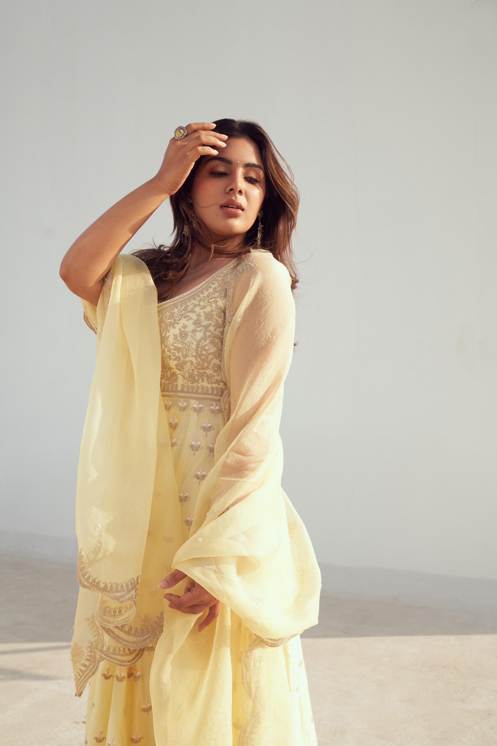 Samyuktha Menon is captivatingly charming in these latest clicks. The actress looks absolutely ethereal in a stunning cream anarkali dress. Samyuktha is currently busy with exciting projects like “Swayambhu” and “Akhanda 2.