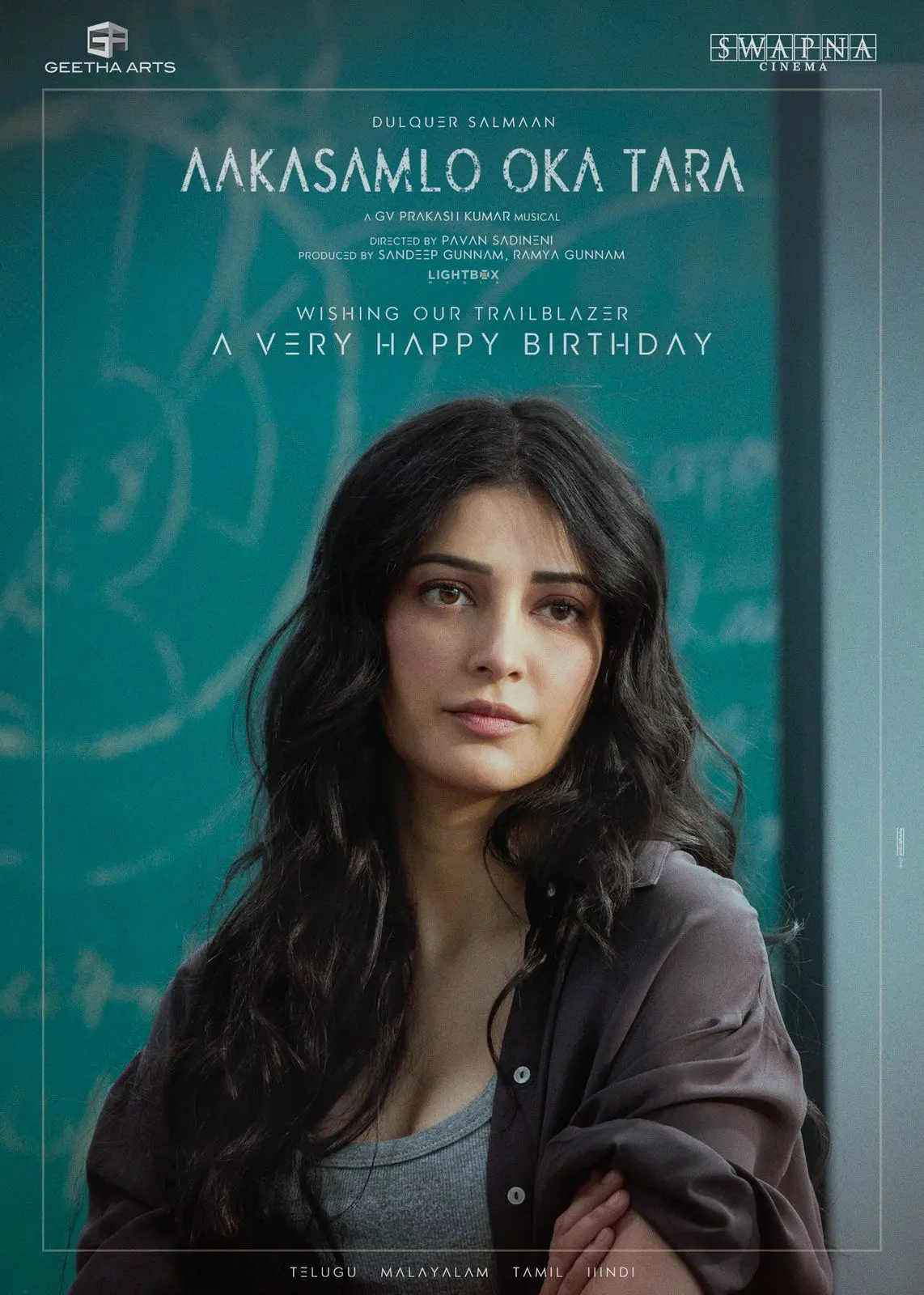 The makers have officially introduced Shruti Haasan in a crucial role in Dulquer Salmaan’s next film. Her first look shows her in a serious and intense avatar, hinting that her character will play an important part in the story and bring a major turn in the film’s narrative.