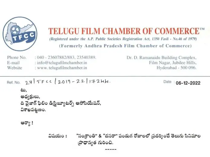 In the letter, it is mentioned that exhibitors should prefer Telugu films during festival seasons like Sankranthi and Dasara. “The association had extensively discussed the need to prioritize Telugu films during the festival seasons. Exhibitors are hereby requested to do the needful and give top preference to Telugu films during the festival season” the letter read.