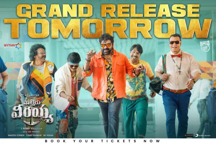 Megastar Chiranjeevi’s Waltair Veerayya is a day away from its release and the advance bookings and pre-sales are showing great signs of a bumper opening. Waltair Veerayya’s USA pre-sales have now crossed the $500 k mark showcasing a strong jump from the otherwise slow initial bookings.