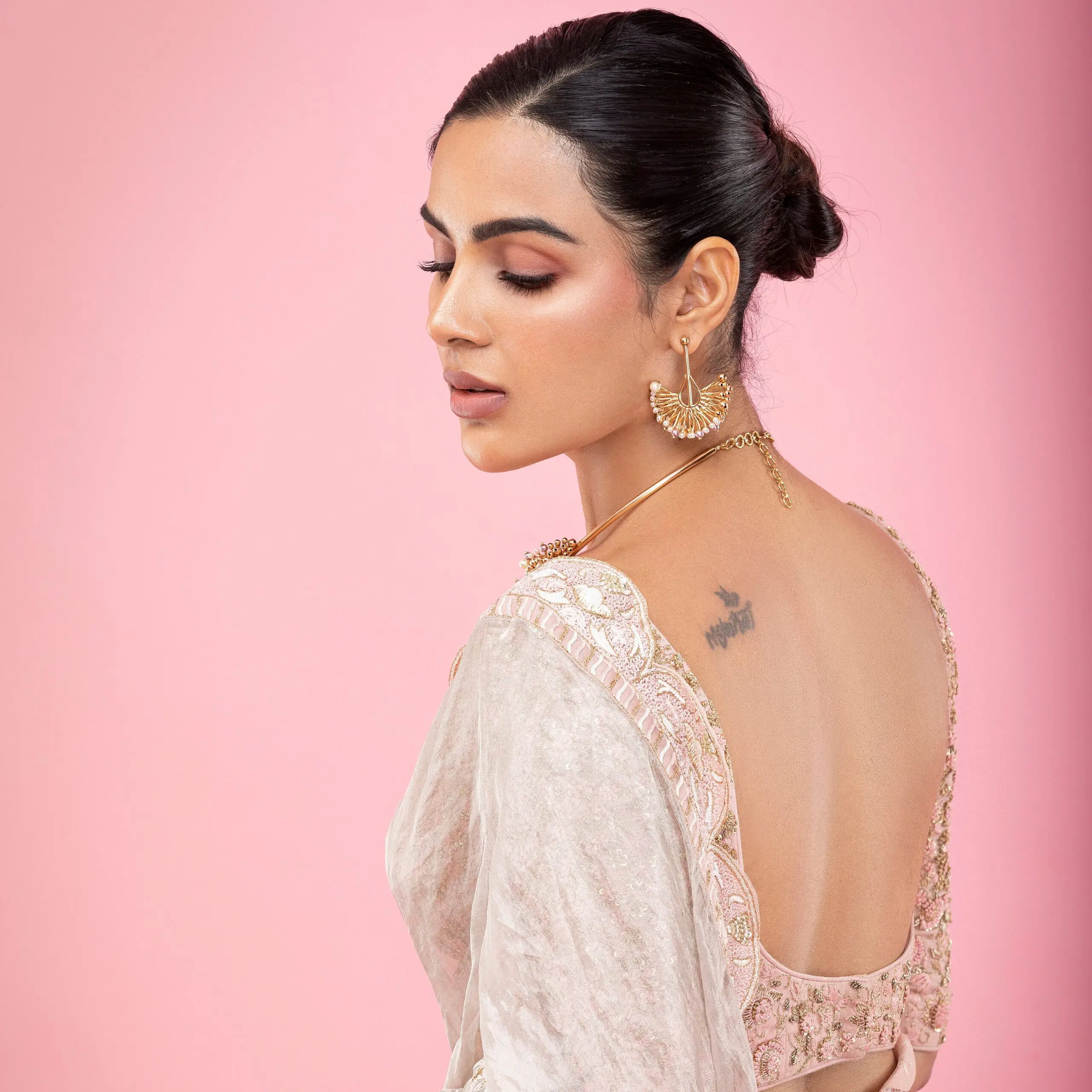 Pale Pink saree adds more elegant flavor to samyuktha